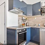 An oven and a dishwasher are featured in a kitchen. This apartment is in close proximity to Ile des Pecheurs bus stop.